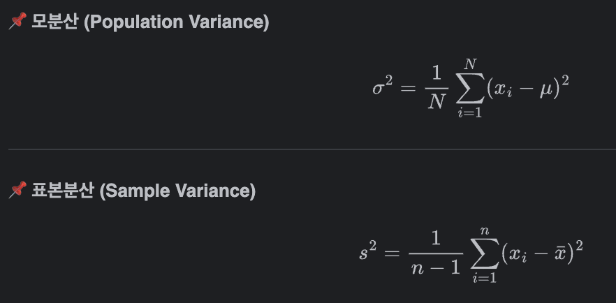 var(), std()를 통해 분산/표준편차를 구함에 있어 ddof(degrees of freedom, 자유도)값이 0 고정으로 설정되어 있음. → 모분산/모표준편차