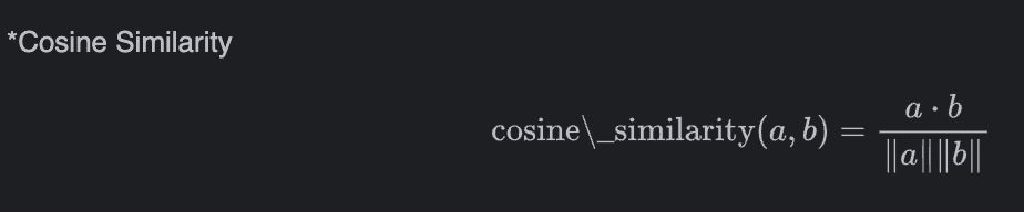 내적 연산은 cos 유사도와 비슷하기에 내적 연산의 값을 활용. (절대값 곱의 연산은 비용이 크기에 제외)